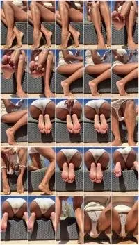 Reading my novel in the terrace at a friends house. I didn’t notice it at first but I already stained my light pink panties before getting the real action done. Check out for the preview images to see the stain. What was exciting about this scene? There are a few buildings around so someone could easily see me from a distance when I creamed up my panties. Looking at the video after, I like the huge bulge hanging down. I had a pee then I was going to take off the panties and look at the colour, have a smell and give a good look. Unfortunately, my friend went up the stairs at that moment. That was a blood rush, being caught, trying not leave any poop on the floor, hiding the pee I made on his floor and running as fast as possible to the bathroom. The run was fun and stressful because I was afraid of dropping poop on the floor. Very exiting scene. I will do it again in different underwear and show you that delicious mess.