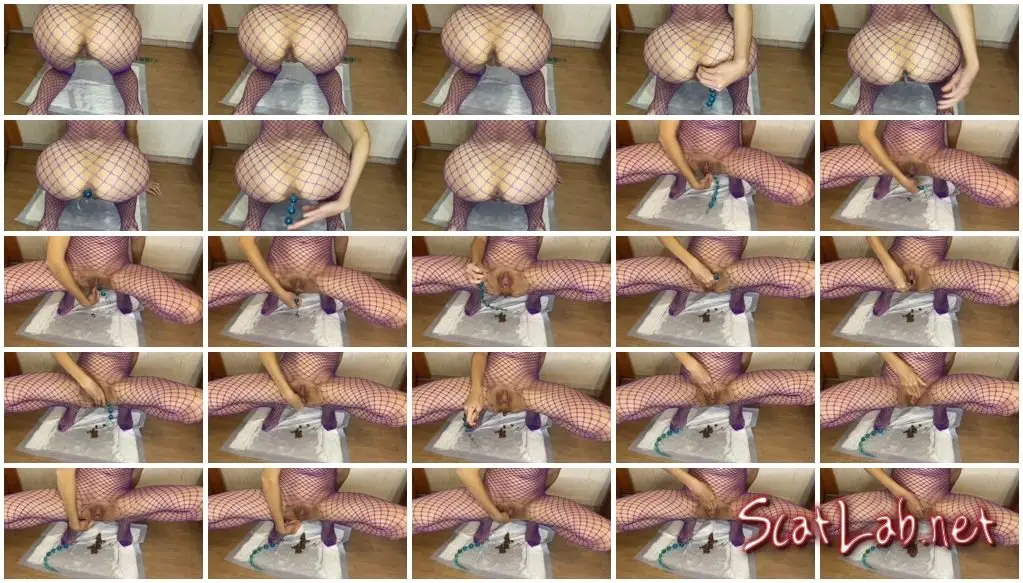 Anal beads in the ass, getting shit, I put my fingers in the ass and get some extra shit, I pee, I put my hand in the pussy and ass in a fishnet suit, fisting.